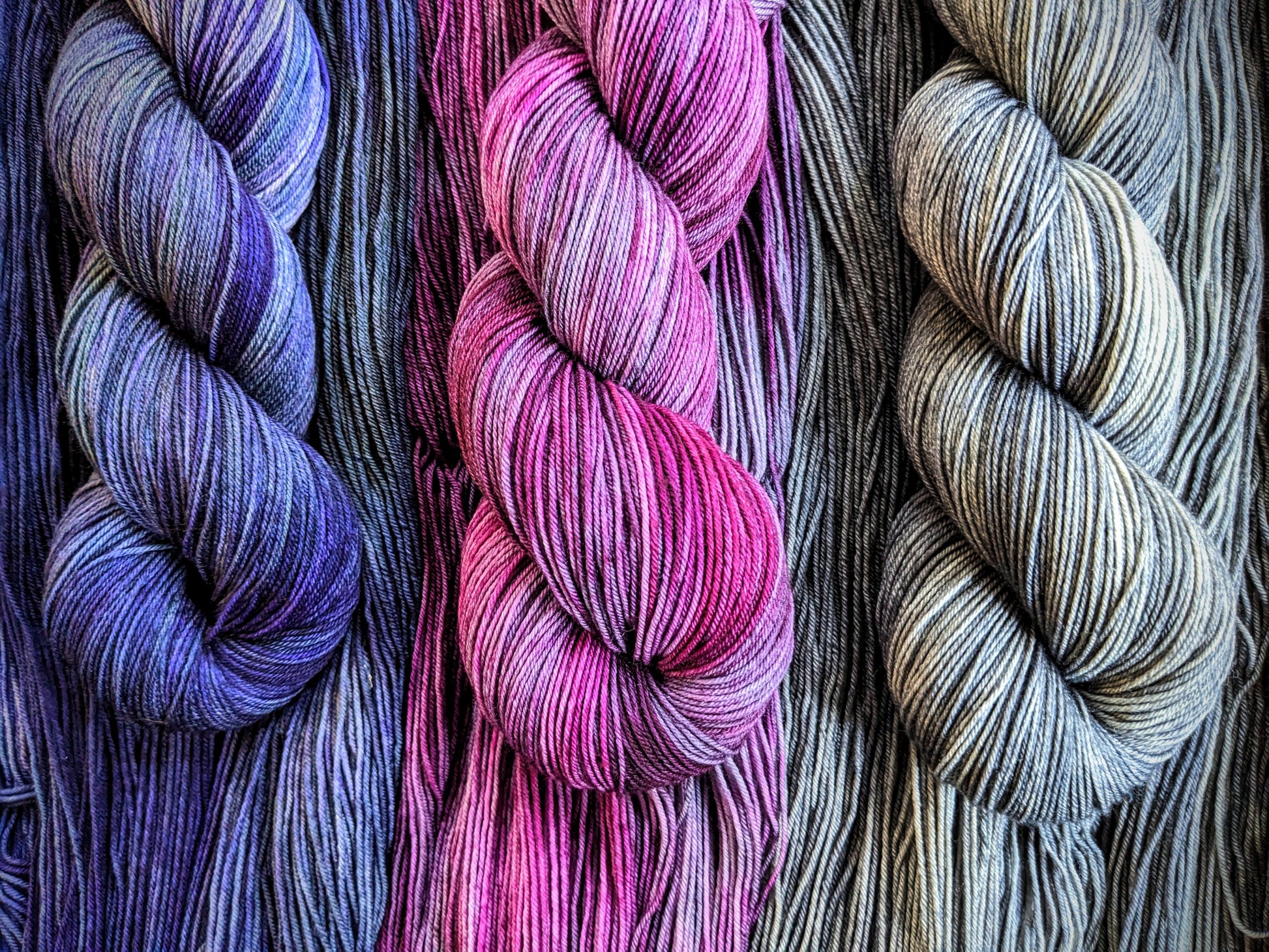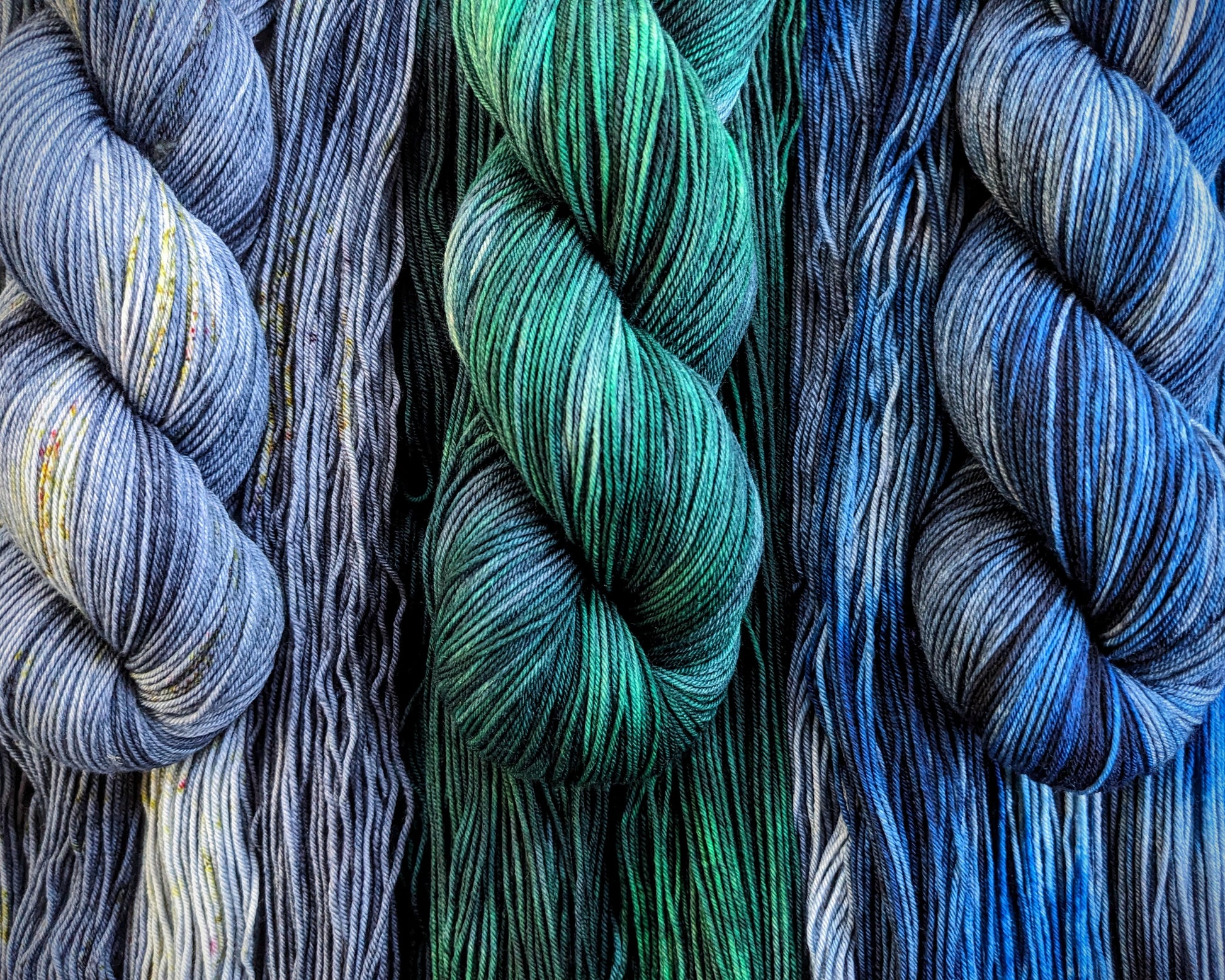 Yarn colorways vary across yarn bases as fibers respond to dyes differently. Yarn is thoroughly rinsed and set after the dyeing process, but it is normal for hand-dyed yarn, especially deeply saturated colors, to leave a little color in the first couple of washes. It is recommended to hand wash your project in cool water (wool wash optional!), and then lay flat to dry. Washing and drying by machine may have undesired results, but this can be tested with a small swatch!